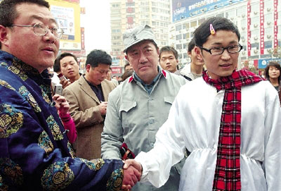仨“山寨明星”聚會(huì)二七廣場(chǎng)