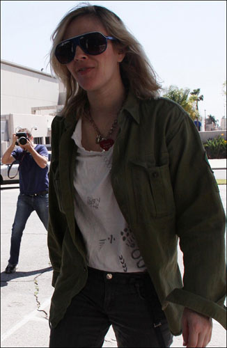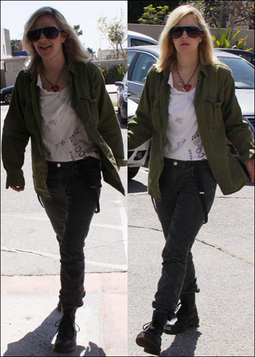 3月24日,打扮越來越有自己風(fēng)格的德魯·巴里摩爾來到美國加州好萊塢的一個(gè)工作室,身穿軍綠色上衣、黑色長(zhǎng)褲配軍裝靴的她顯得帥氣而隨性。
