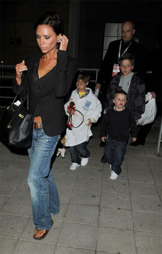 最近有傳聞和婆婆因?yàn)楹⒆拥年P(guān)系不合的黑臉辣媽維多利亞·貝克漢姆上周六(3月28日)帶著自己的3個(gè)兒子,前去球場為老公貝克漢姆助陣,吶喊助威。