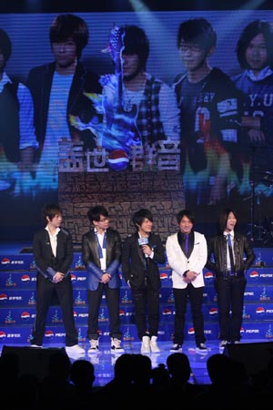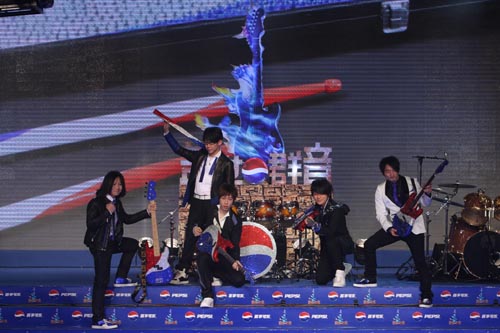 中新網(wǎng)3月31日電 3月31日,由百事公司旗下知名品牌“百事可樂”主辦的“蓋世群音”百事樂隊(duì)大賽啟動(dòng)式新聞發(fā)布會(huì),在北京D-PARK時(shí)尚設(shè)計(jì)廣場(chǎng)登場(chǎng)。于2日前剛開完成軍十周年演唱會(huì)的亞洲第一天團(tuán)“五月天”以“蓋世群音”百事樂隊(duì)大賽活動(dòng)大使身份接過領(lǐng)軍大旗,尋找一支有理想、有才華、會(huì)創(chuàng)作、敢突破的“明日天團(tuán)”。
