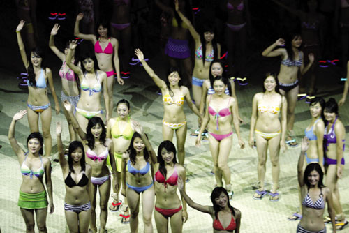 由張藝謀、王潮歌和樊躍“鐵三角”共同執(zhí)導(dǎo)的大型實(shí)景演出———《印象·海南島》,昨晚在?谑杏∠髣(chǎng)首次公演。這是自《印象·劉三姐》、《印象·麗江》“雪山篇”和《印象·西湖》之后的第四個(gè)印象系列作品,也是張藝謀繼北京奧運(yùn)會(huì)和殘奧會(huì)之后推出的首部作品。因?yàn)檠莩鲋杏猩习倜琅展庠〉膱?chǎng)景,有人戲稱:“這是張藝謀在為之前出了‘海灘曬肉’事件的章子怡辯護(hù)。”
