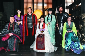 臧金生飾演的秦始皇和李易祥飾演的劉邦兩個(gè)皇帝在臺(tái)上見(jiàn)面,相互之間特別客氣。