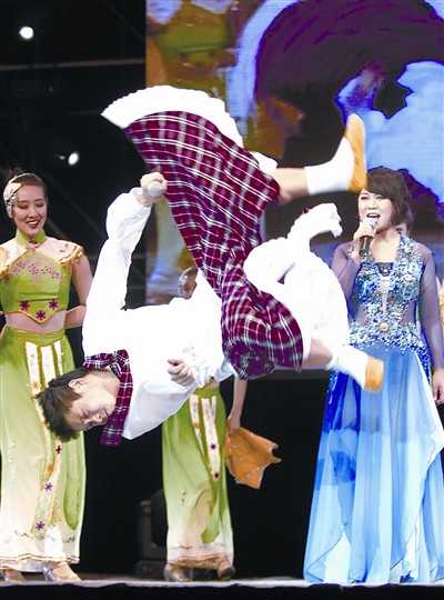 小沈陽人氣非常之高,現(xiàn)場上座率達到9成,連兩側看不到舞臺的地方都坐滿了人。主辦方透露,小沈陽的票出了8成之多,這在以往實屬罕見。大部分的觀眾都沖著小沈陽而來,前面1個半小時的表演里,大家雖然笑是笑,但是只有小沈陽走到舞臺上時,全場氣氛才為之沸騰。有粉絲上臺去獻花、強吻小沈陽,這可都是別的演員享受不到的待遇哦!老實說,小沈陽表演的確很賣力,不管是吼《死了都要愛》還是唱《大!飞踔潦潜硌荨睹餍桥c粉絲》的段落,但是在側面觀看小沈陽的表情時,記者幾次都發(fā)現(xiàn)他在拼命的眨眼睛,似乎要趕走隨時而來的睡意。