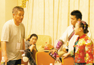 很少能看到趙本山和小沈陽(yáng)同臺(tái)表演,這次海南之行的首場(chǎng)演出,恐怕也是“劉老根大舞臺(tái)笑轉(zhuǎn)2009”全國(guó)巡演中唯一一場(chǎng)本山師徒同臺(tái)的表演,因?yàn)橛^眾是參加博鰲論壇的國(guó)際政要和經(jīng)濟(jì)專(zhuān)家。在演出后臺(tái),本山首先演練了一遍即將在舞臺(tái)上表演的“吹拉彈唱”,隨后就開(kāi)始對(duì)自己的徒弟一一評(píng)點(diǎn)。別看徒弟們個(gè)個(gè)在舞臺(tái)上精神抖擻,但在面對(duì)如此大場(chǎng)面時(shí)不免有些緊張,紛紛對(duì)師父說(shuō)出自己的顧慮!皠e緊張,就當(dāng)是在咱們沈陽(yáng)中街基地演了!”“你這個(gè)口我看可以使,沒(méi)關(guān)系,出了事我兜著!薄澳阒虚g的那一段就不要加了,不好,不文雅!泵鎸(duì)徒弟,本山嚴(yán)肅認(rèn)真地對(duì)他們的表演提出要求。因?yàn)閷?duì)徒弟的表演和絕活爛熟于心,本山三言?xún)烧Z(yǔ)就指出了他們的不足,并且提出了建議。有了他的點(diǎn)撥,徒弟們個(gè)個(gè)信心十足地走上了舞臺(tái)……