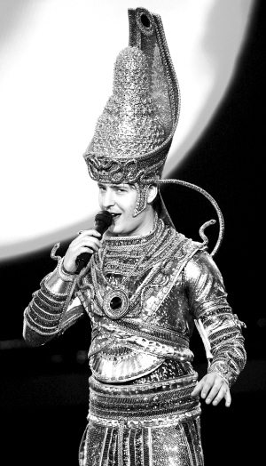維塔斯火起來(lái)是在2000年,克里姆林宮一曲《歌劇2》,真是驚為天人。那時(shí)的他愛穿標(biāo)志性的窄身黑西裝,戴著一條紅圍巾,跨越5個(gè)八度的不可思議的海豚音,給人的感覺神秘而空靈。昨天的維塔斯卻以一身紅色的機(jī)器人服飾出場(chǎng),剛開始的幾個(gè)高音完全聽不出原有的清亮,眉眼也因?yàn)榘l(fā)胖而顯得模糊,依稀能看見個(gè)熟悉的輪廓,但魅惑的精魄已經(jīng)散去。從無(wú)字《詠嘆調(diào)》到《我的太陽(yáng)》再到《今夜無(wú)人入眠》,一首首經(jīng)典曲目在他口中變得千篇一律,而中文曲目《大海啊大!贰肚嗖馗咴方o人刻意討好的感覺。每次唱到高潮部分,維塔斯總會(huì)因?yàn)槭治枳愕付^演唱,一段段熟悉的旋律就此在他游離的眼神間劃過,好像磁帶突然跳帶,讓人很不過癮。