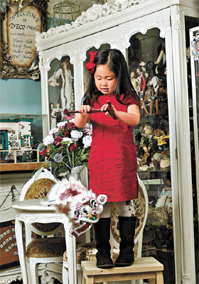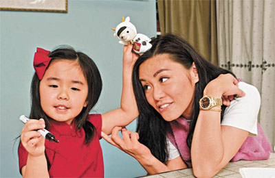 中新網(wǎng)2月2日電 鐘鎮(zhèn)濤(阿B)女友范姜為了令女兒鐘懿多學(xué)一點(diǎn)中國(guó)傳統(tǒng)文化,早前趁春節(jié)兩母女一起炮制紙黏土牛牛公仔,不過(guò)耐心的范姜和好動(dòng)的女兒,合拍程度有待改善。范姜說(shuō)現(xiàn)年4歲的鐘懿,在新春只學(xué)會(huì)當(dāng)場(chǎng)拆紅包及魚(yú)蝦蟹,不過(guò)在年初一也會(huì)跟哥哥姐姐一起跪地斟茶給長(zhǎng)輩。