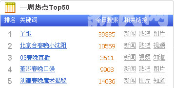 新民網(wǎng)記者在百度等搜索網(wǎng)站看到,僅2月1日一天,網(wǎng)友搜索“丫蛋”這一詞條已近四萬次,名列百度搜索排行前列。而在貓撲論壇等國內(nèi)知名論壇,表示看了春晚立刻上網(wǎng)去搜 “丫蛋”的網(wǎng)友也為數(shù)眾多。不少網(wǎng)友表示事后發(fā)現(xiàn),“丫蛋”一開始并無其人,經(jīng)歷春晚后,才一躍成為網(wǎng)絡紅人。蕭君瑋