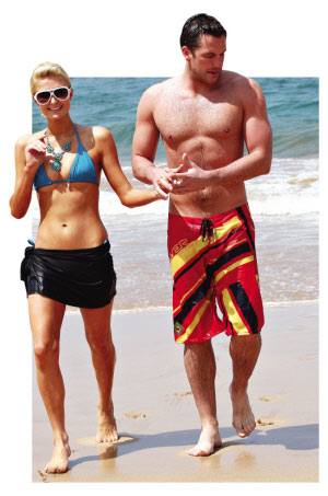 希爾頓的風(fēng)流史全球聞名,身家30億英鎊,身邊的男伴也頻頻更換。沒有想到,28歲的“芭比娃娃”的真命天子就這樣出現(xiàn)了:比她小5歲的美國職棒大聯(lián)盟球員道格·雷恩哈特拜倒在她的石榴裙下。
