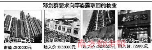 另外,有報(bào)道指,鄧劍群在向法院交待這些年交與李姿霆的多處物業(yè)時(shí)稱,當(dāng)初以李姿霆的名義購(gòu)買物業(yè)只是為怕兩人戀情會(huì)因他登記成為業(yè)主而被揭發(fā),但并沒(méi)有打算將物業(yè)以饋贈(zèng)形式轉(zhuǎn)讓給李姿霆,如關(guān)系終結(jié),她持有的業(yè)權(quán)將悉數(shù)歸還給鄧劍群。