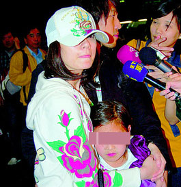 賈靜雯出現(xiàn)后,等候多時(shí)的記者立刻蜂擁而上,這時(shí)從接機(jī)人群沖出一位年約七、八歲小女孩,奔向賈靜雯懷抱,大家以為是梧桐妹,立刻上前圍堵爭拍,賈靜雯用手護(hù)住女孩面龐,擔(dān)心她被閃光燈嚇到。賈靜雯說,這是一個(gè)親戚的女兒,不是梧桐妹,何時(shí)能見到女兒,還要等孫志浩的電話。