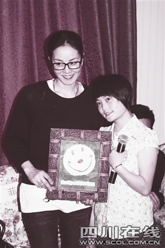 而另一名在地震中腦部受傷的小朋友王麗,還為王菲送上了自己編織的兩個(gè)“水晶”蘋果,并唱了一首《一千零一夜》,雖然有些走音,但王菲一直用微笑鼓勵(lì)她,李亞鵬還摸著王麗的頭,讓她以后好好唱歌,爭取當(dāng)歌星。