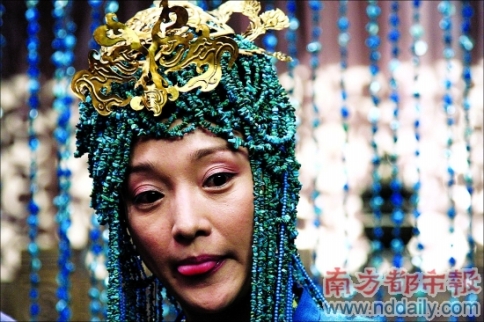 在當晚拍攝的戲中,史籍中記載“艷而淫”的南子面帶嬉笑地圍著孔子轉(zhuǎn)圈,在孔子面前跪下。
