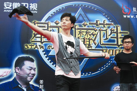 昨日,安徽衛(wèi)視綜藝節(jié)目《星光魔范生》來武漢路演,臺(tái)灣魔術(shù)師粘立人上臺(tái)表演精彩魔術(shù),贏得路人喝彩。隨后,他在接受記者采訪時(shí)表示,大家憑實(shí)力吃飯,劉謙來得早,他也不會(huì)因此就落后。