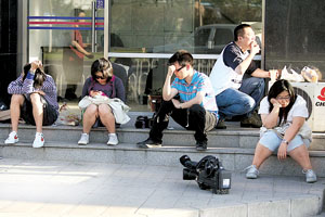由于不能進(jìn)入大門,記者們只得在門口轉(zhuǎn)來轉(zhuǎn)去,相互打聽著是否有滿文軍出來的準(zhǔn)確時間。