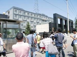 2日晚10時(shí),在朝陽北路北京市公安局朝陽分局看守所和拘留所的大院門外的輔路上,已經(jīng)停滿了新聞?dòng)浾叩能囕v,30余名記者手持照相機(jī)或攝像機(jī)已經(jīng)在門外苦苦等候。昨日早晨7時(shí),陸續(xù)又有數(shù)名記者趕到朝陽看守所大門口參與蹲守。
