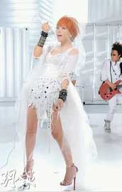 阿妹解釋因?yàn)樾那榕d奮,進(jìn)食后又叫又跳所以反胃。她表示披上搖滾款式的婚紗最想嫁音樂漢子,她希望對日本X-Japan主唱Toshi說﹕“我要嫁給你!