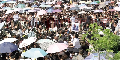 中午11點30分,治喪委員會新聞發(fā)言人郎永淳宣布告別廳關閉,告別儀式結束。他解釋說,因為北京的風俗及家屬的意愿,12時之前一定要結束儀式,F(xiàn)場仍有數(shù)百名群眾未能進入告別廳。郎永淳說:“請沒有進去的群眾諒解,你們的熱情羅京老師一定會感受到的。”他向四周的群眾分別鞠躬,并呼吁大家用掌聲送羅京最后一程,人群中馬上爆發(fā)出雷鳴般的掌聲。