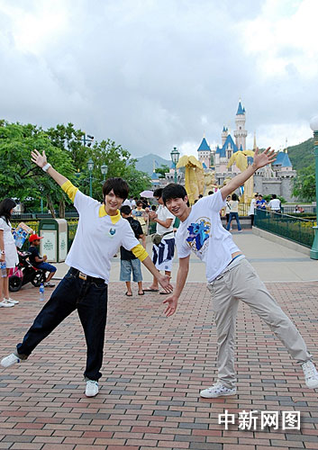 吳建飛與向鼎此前現(xiàn)身香港迪斯尼樂園,完成了宣傳片的拍攝。雖然已不是第一次來到香港迪斯尼樂園,但兩位好男兒依然對(duì)樂園內(nèi)的一景一物表現(xiàn)出強(qiáng)烈的興趣,十分享受童話世界般的夢幻氛圍。拍攝中,他們?cè)跇穲@的景觀前擺出可愛姿勢,興奮地體驗(yàn)“旋轉(zhuǎn)飛車”,還興致勃勃地在紀(jì)念品專賣店里挑選有史迪仔圖案的T恤,流露出濃厚的童心。