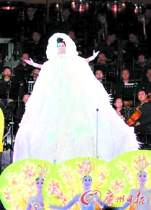一向給人端莊印象的宋祖英,此次在演出中也換上了六套華服,每一套都可以用“驚艷”來形容。這幾套禮服將中國元素運(yùn)用得淋漓盡致,造型師還罕見地在頭飾上做了不少變化,為她增添了不少活潑之氣。據(jù)悉,這些服裝是中國、意大利、法國、日本等國際頂級設(shè)計師聯(lián)合制作的。