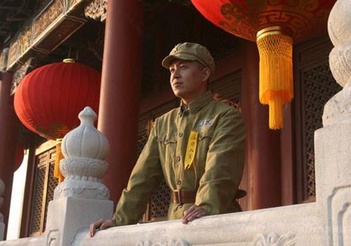 扎宮燈的“封建殘余”藺老爺可不普通,雖然是配角,舉手投足都是戲。不管是他抬頭望著拿空慈竹的老屋頂,還是感慨地看著天安門城墻上隨風飄動的那些有生以來做得最大的紅燈籠,還是在開國大典時拿下帽子向天安門向毛主席深鞠一躬,都讓人心中泛起一種說不出的感覺,是去舊迎新?據(jù)葉導介紹,這位藺老爺就是著名的相聲表演藝術(shù)家田立禾。