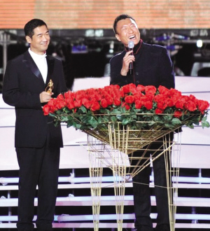 昨晚8時(shí),第27屆中國電視劇飛天獎(jiǎng)?lì)C獎(jiǎng)典禮在北京“水立方”盛大舉行。本屆“飛天獎(jiǎng)”的明星陣容實(shí)在強(qiáng)大,創(chuàng)下了歷史之最,李幼斌、孫紅雷、張國立、孫儷、殷桃等眾多電視劇紅人一一登場;《闖關(guān)東》、《潛伏》、《金婚》、《士兵突擊》等20多個(gè)劇組分別亮相,十分熱鬧。最受關(guān)注的優(yōu)秀男女演員獎(jiǎng)昨晚現(xiàn)場揭曉,“佟掌柜”閆妮和薩日娜同獲“飛天”優(yōu)秀女演員獎(jiǎng)。優(yōu)秀男演員獎(jiǎng)杯則被張國立和孫紅雷抱了個(gè)滿懷。昨晚最高興的非孫紅雷莫屬,握著獎(jiǎng)杯的他快把嘴笑歪了。