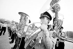 在即將到來的國慶60周年閱兵和群眾游行活動中,他們是最為特殊的一支隊伍:第一個入場,最后一個離場;不受檢閱,但用45首樂曲 (部分曲目重復)控制著整場慶典的節(jié)奏。