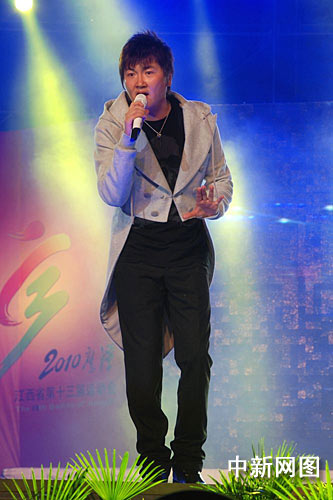 中新網(wǎng)鷹潭10月24日電 (劉占昆) 10月23日晚,中國(guó)內(nèi)地著名實(shí)力歌手孫楠在上周唱完山東全運(yùn)會(huì)主題曲后,此次又來到江西省第十三屆運(yùn)動(dòng)會(huì)主辦地鷹潭壓軸連唱四首歌曲。