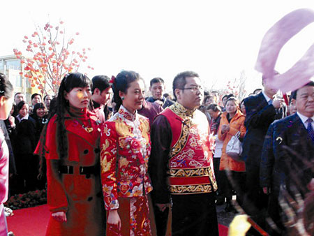 據(jù)記者獲得的婚禮流程表顯示,車曉當(dāng)天5點(diǎn)起床梳妝打扮,同時新郎李兆會先去向奶奶請安,再去舉行拜祖儀式,接近9點(diǎn)迎娶新娘。而新娘進(jìn)入婚宴會場前,李家奶奶要為其佩戴見面禮——價值近20萬的“仙鶴大福金項(xiàng)鏈”,李兆會的幾個嬸嬸也分別贈送車曉各種貴重首飾。