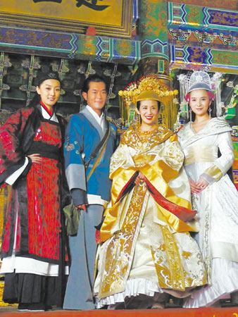 昨天,由王晶導(dǎo)演,匯集了古天樂、大S、吳君如、羅家英、林子聰、李健仁等笑星的古裝喜劇《大內(nèi)密探零零狗》對(duì)媒體開放橫店片場(chǎng)。頭戴黃金冠,身披黃金衣,首度以戲裝現(xiàn)身的吳君如的造型像極了《滿城盡帶黃金甲》里的鞏俐,山寨味十足。
