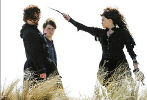 《哈利·波特》系列電影的第七部——《哈利·波特與死亡圣器》,目前正在英國彭布魯克郡熱拍。扮演女魔頭貝拉特里克斯的英國女演員海倫娜·邦漢·卡特出現(xiàn)在了片場,這個(gè)在第五集《哈利·波特與鳳凰社》開始登場的壞蛋,難得出現(xiàn)在外景中,她將與哈利三人組進(jìn)行更激烈的對(duì)抗。在拍片現(xiàn)場,“哈利”丹尼爾·雷德格里夫和“赫敏”艾瑪·沃森也都高調(diào)亮相。