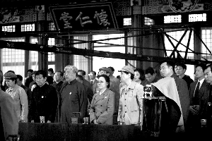雙排扣的列寧裝、黃綠色的舊軍服、青布長袍……昨天,上百名北京市政協(xié)委員跨越60載光陰,坐進“中南海懷仁堂”,出席“第一屆全國政治協(xié)商會議”。國慶獻(xiàn)禮影片《建國大業(yè)》的拍攝即將殺青,委員們親自出演了當(dāng)年參會議政的“各界代表”。