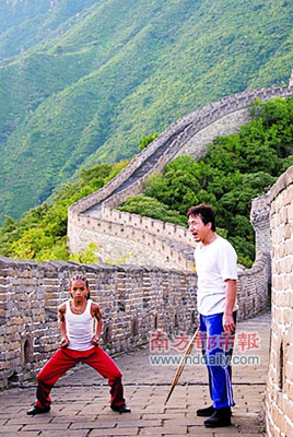 由成龍和威爾·史密斯的兒子賈登·史密斯(JadenSmith)主演的《功夫夢》(The Karate Kids)近日曝光了幾張官方劇照,畫面所見,成龍?jiān)陂L城上訓(xùn)練賈登·史密斯,小子架勢十足。該片由中影集團(tuán)、索尼·哥倫比亞和威爾·史密斯(Will Smith)旗下的Overbrook娛樂公司聯(lián)合投資拍攝,將于明年6月11日在北美公映,中國也將同步引進(jìn)。