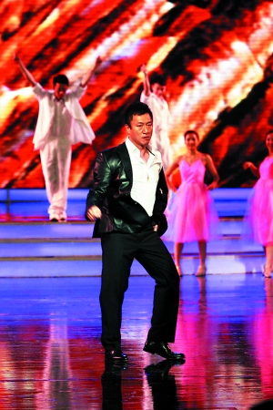 張藝謀親自下場,《三槍》的兩位男主演也紛紛獻藝。小沈陽與阿寶現(xiàn)場飆歌,孫紅雷也不甘示弱,和幾位專業(yè)舞蹈演員激情共舞,霹靂、倫巴輪番上場,力證自己也是個多才多藝的演員。看著孫紅雷和小沈陽又唱又跳,在一旁當觀眾的張藝謀和閆妮笑得很開心!度龢尅烽_拍時曾傳出孫紅雷和小沈陽不和,乃至大打出手的消息。今年6月上海電影節(jié)期間,孫紅雷從《三槍》片場帶傷趕來出席,也側面證實了這一傳聞。不過,在電視鏡頭面前和張藝謀的注視下,兩人表現(xiàn)得十分和諧,還現(xiàn)場掰手腕,結果是人高馬大的孫紅雷輸給了小沈陽。后來有小沈陽的粉絲上臺,一邊熊抱小沈陽,一邊喊“我愛你”,還不忘自我介紹說是來自杭州的。一旁的孫紅雷聽到后淡淡地說了一句話:“我也是杭州來的!贝撕,他一有機會就不斷重復這句話,不知道是調侃小沈陽的粉絲還是暗地諷刺對方,抑或對沒有粉絲擁抱自己表示不滿?