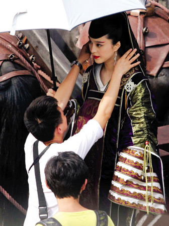 陳凱歌新片《趙氏孤兒》正在寧波趕拍,范冰冰的孕婦造型日前浮出水面。當天正在拍攝一場趙朔攜莊姬進城見晉王的戲份。范冰冰扮演的莊姬華服綾羅地端坐在馬車內(nèi),黑紗遮面,被趙文卓緊緊牽著。莊姬是“趙氏孤兒”趙武的生母,也是片中分量最重的女性角色。導(dǎo)演一喊卡,立即有三四個助手沖上去攙扶范冰冰下車,范冰冰以腹部高聳的造型亮相。雖然范冰冰早前在《蘋果》中也扮演過孕婦角色,不過像這樣夸張的“十月臨盆”的大肚造型還是比較罕見的。(辛文)