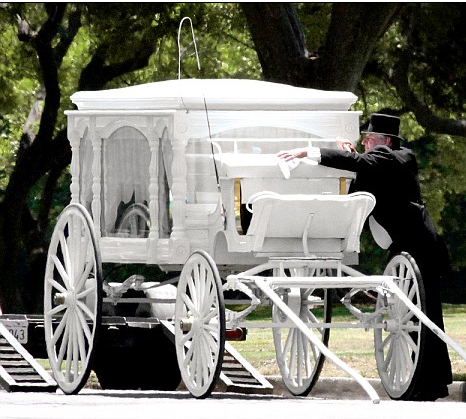 杰克遜的遺體葬禮當(dāng)天將用一輛充滿童話色彩的白雪公主式馬車運(yùn)抵葬禮地點(diǎn),而不是一般葬禮將會(huì)使用的黑色車輛。