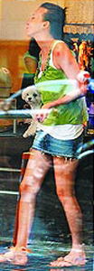 這時愛犬突然發(fā)瘋隔著玻璃對路人狂吠,還失控在店內(nèi)狂奔,蕭薔才移動玉體小碎步把狗抓回來;不過她似乎發(fā)現(xiàn)記者拍照,隨即戴上漁夫帽和大墨鏡變裝。