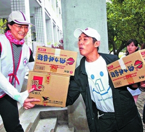 李連杰8月13日起帶著物資深入臺(tái)灣災(zāi)區(qū),為備受超級(jí)臺(tái)風(fēng)莫拉克摧殘的臺(tái)灣中南部災(zāi)民及義工打氣。前日他繼續(xù)探訪災(zāi)區(qū),有災(zāi)民向他哭訴:“我家全沒(méi)了!”李連杰趕緊握住他的手給予安慰,場(chǎng)面感人。不過(guò)也有輕松的時(shí)候,李連杰所到之處,大批災(zāi)民和義工均蜂擁上前看熱鬧,許多年輕女義工更是尖叫著將他團(tuán)團(tuán)圍住,李連杰只能笑說(shuō):“這么圍著,我怎么探望災(zāi)民啊!