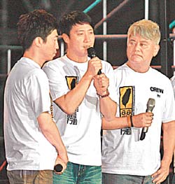 劉德華、黎明上周來(lái)臺(tái)參加中視募款活動(dòng),兩人同臺(tái)中間夾著一個(gè)人,當(dāng)劉德華說(shuō)話時(shí),其它藝人都看著他且點(diǎn)頭附和,黎明則雙手抱胸沒(méi)有表情。