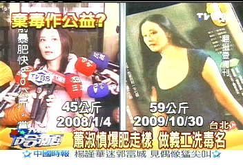 因為兩度吸毒被逮,演藝事業(yè)幾乎停擺的她,也坦言現在固定在慶生診所附設的涵宇護理之家和創(chuàng)世基金會,兩頭跑做義工,沒有毒癮,生活非常規(guī)律,體重才會從原本40多公斤飆到59公斤。