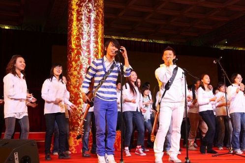 為歡迎美國(guó)總統(tǒng)奧巴馬訪華,前晚一場(chǎng)特別的慶;顒(dòng)在人民大會(huì)堂舉行,中國(guó)文藝界明星紛紛登臺(tái)獻(xiàn)藝,羽泉作為流行樂(lè)壇的唯一代表壓軸獻(xiàn)唱歌曲。