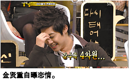 韓國人氣組合SS501成員金賢重,在前晚播出的電視節(jié)目中自曝曾與一名女藝人交往,這一話題迅速成為人們關(guān)注的焦點。