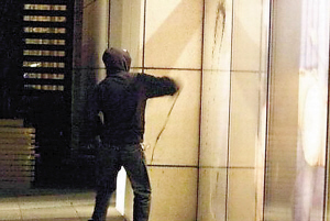 12月23日晚11點左右,在張曼玉訂婚的北京柏悅酒店外,一輛黑色奧迪Q7里下來四五個統(tǒng)一著迷彩樣服裝、戴著墨鏡的男子,走進酒店問大堂里的保安:“章子怡住幾層?”保安未予理會,這幾個人立刻站在酒店大堂內,用略帶東北口音的普通話高喊:“章子怡,大傻X!騙人錢!勾引人老公!”隨后離去。大約半小時后,這輛車又開到了酒店門前。車上下來兩個用套頭衫裹著自己的男子,手里拿著墨汁,走到酒店門東側一間章子怡代言的鉑金店門前,沖櫥窗里的章子怡海報潑了上去,然后撒腿跑向汽車。之后這輛車拉著警報離開。