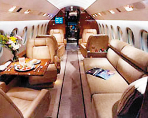 重慶航空公司的袁先生告訴記者,照片中劉濤所乘坐的私人飛機(jī)是價(jià)值2850萬歐元(近3億元人民幣)的噴氣式飛機(jī)——“獵鷹2000EX”,著名籃球明星麥克格雷迪、車王舒馬赫和德國(guó)前總理施羅德也擁有同樣型號(hào)的私人飛機(jī),平均每小時(shí)的耗油量要花費(fèi)1300歐元(約1萬多元人民幣)。據(jù)了解,該機(jī)型的飛機(jī)裝潢比其他私人飛機(jī)都要豪華,飛機(jī)上裝備有大號(hào)沙發(fā)床、整體廚房、浴室、DVD播放機(jī)、電話、傳真等,甚至還能無限寬帶上網(wǎng)。