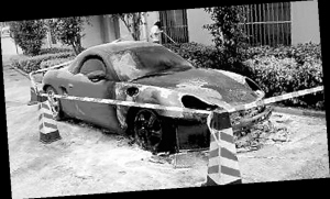 2010年2月26日凌晨,這輛跑車在南寧市錦繡江南小區(qū)內蹊蹺起火。