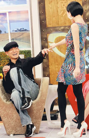 劉德華提及小S要用代言的私密處乳液遮家暴瘀青的新聞,小S則硬拉劉德華跳國(guó)標(biāo)舞,狂野的扭腰擺臀,最后整個(gè)人掛在他身上,再?gòu)乃柘禄^(guò)去。事后她對(duì)華仔的力氣大為贊美:“他完全撐得住我耶,上次跟康永哥跳這招,結(jié)果我整個(gè)人躺平在地上。”