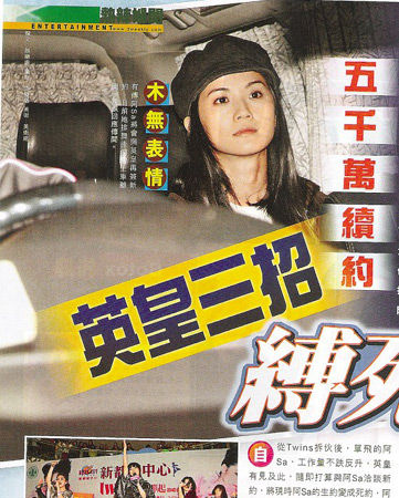 在Twins拆伙期間,單飛的阿Sa工作量不跌反升。當時不僅有其他唱片公司打算高薪挖角,而且她與鄭中基仍是夫妻關系,有傳鄭中基有意撬她到金牌組成夫妻檔賺錢,在種種“誘惑”之下,英皇與阿Sa的新合約問題一直處于拉鋸階段,久久未能成事。 現在“Sa基”婚變,英皇趁機再談續(xù)約。為了讓阿Sa下定決心,英皇準備以5000萬港元的天價利誘阿Sa,并承諾將力捧她,在Twins的復合演唱會后讓阿Sa再次單飛工作。有知情人士說:“阿Sa本來就和公司關系非常好,現在和鄭中基劃清界線后,更加要搏命賺錢。公司給出那么優(yōu)厚的條件,阿Sa很難不心動!