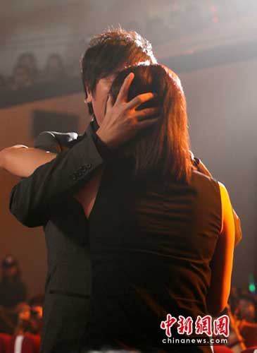 中新網(wǎng)4月12日電 4月11日晚,蒙牛酸酸乳音樂風(fēng)云榜十年盛典再回深圳盤點(diǎn)華語樂壇新世紀(jì)十年。本屆頒獎(jiǎng)星光熠熠,那英、陳奕迅、莫文蔚等華語樂壇大腕紛紛登場(chǎng)。本屆盛典評(píng)委會(huì)主席那英在活動(dòng)接近尾聲時(shí)榮獲“十年最具影響力音樂人物”大獎(jiǎng),在現(xiàn)場(chǎng)言辭激動(dòng)甚至動(dòng)情落淚,并和孫楠互相親吻。