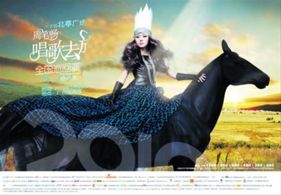 周筆暢出道5年首次個(gè)人巡回演唱會(huì)“唱歌去旅行”即將于5月29日在廣州啟航,近日在記者會(huì)上揭幕了演唱會(huì)海報(bào),當(dāng)海報(bào)完整出現(xiàn)時(shí),臺(tái)上的主持人也不禁大呼“筆筆,這是你嗎?! ”海報(bào)的背景是一片猶如夢(mèng)境的開闊園地,周筆暢出道后第一次摘下了標(biāo)志性的眼鏡,更戴上了嫵媚的長(zhǎng)卷發(fā)和雍容的白色皇冠,身穿2米長(zhǎng)的紗裙坐在黑色駿馬之上,仿佛化身為馳騁夢(mèng)境的女王,呈現(xiàn)出“脫胎換骨”般的戲劇性效果。(齊書勤)