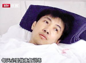 《法治進(jìn)行時(shí)》記者走進(jìn)病房時(shí),鄢頗躺在病床上,李小冉就坐在一邊。鄢頗看上去雖然很虛弱,但是精神還不錯(cuò),還不時(shí)和李小冉有說有笑。他給記者看了右臂和右腿打的石膏:“打著石膏的三處都是有骨折的!薄昂笃谛枰畈欢喟肽甑揭荒甑拿刻毂匾目祻(fù)訓(xùn)練。”說起鄢頗的傷情,李小冉忍不住再次落淚:“愛一個(gè)人就是,你會(huì)覺得雖然很累,但是你心里是很開心的,然后看著他一天天好起來,你會(huì)覺得特別踏實(shí)!