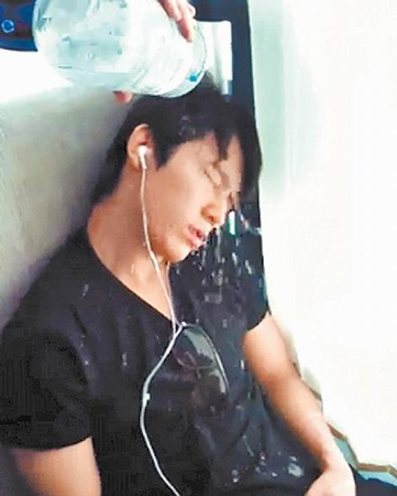 中新網(wǎng)6月28日電 韓國偶像團體Super Junior成員希澈和東海、神童、銀赫約好,誰在床以外的地方睡著就要被潑水,結(jié)果在車上睡著的東海第1個遭殃,希澈倒了一整瓶礦泉水在他頭上,雖然很狼狽,東海仍硬撐:“好涼爽!”